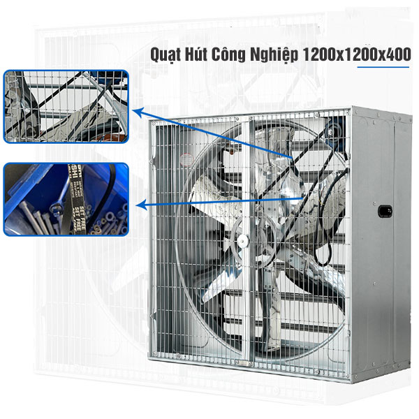 Cấu tạo của quạt hút công nghiệp 1200×1200 gồm ba phần: Vỏ khung, cánh quạt và motor. Trong đó: